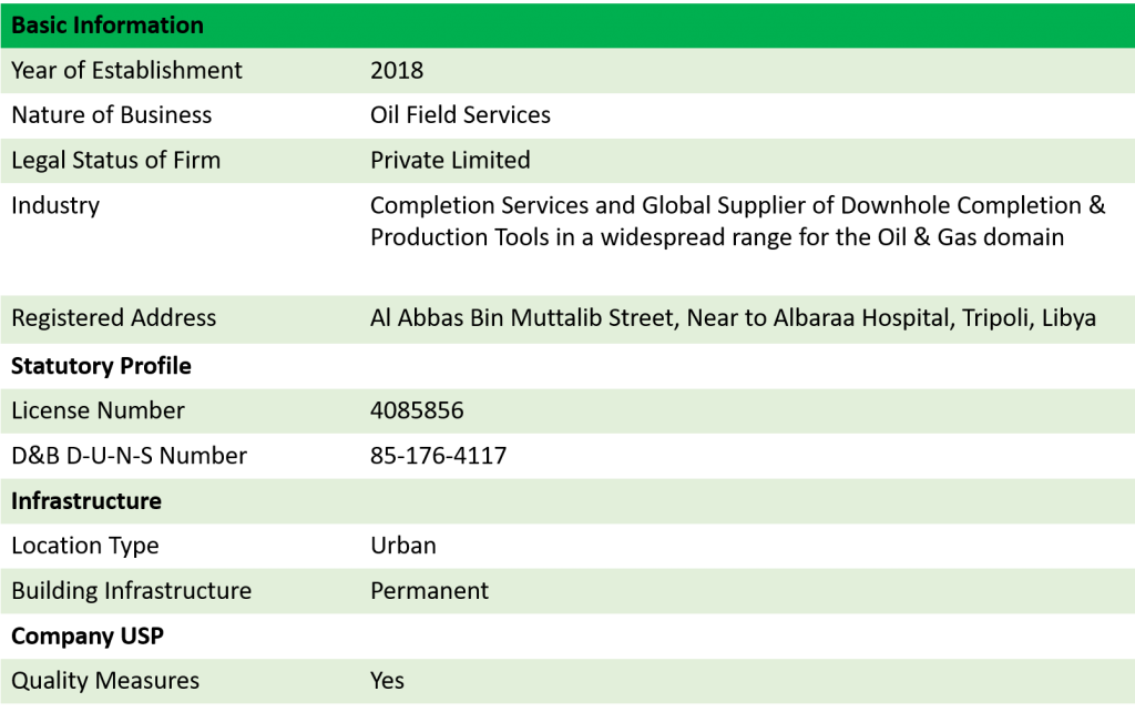 Through the continued application of our core values, we will strive to be the most innovative, trusted and honest completions technology firm servicing the Libyan oil and gas industry.